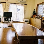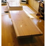 居間、食堂に吉野杉の大きな座卓のテーブルを二つ置きました
