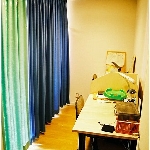 男の子二人の部屋は同性ということで、カラフルなカーテンで間仕切りました。