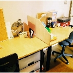 広い部屋の片隅に机がぽつんと置いてあるという状況でした。